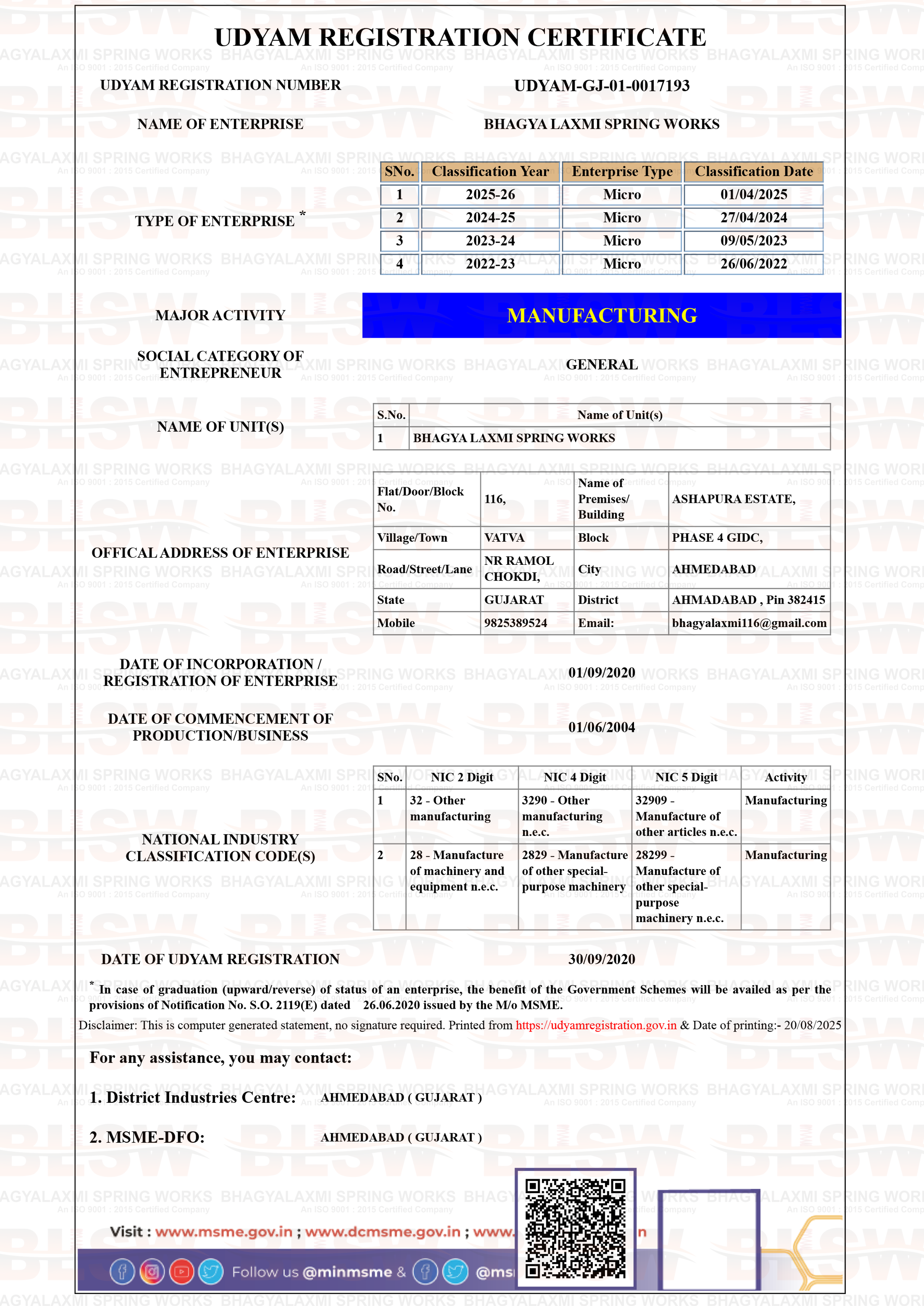 Bhagyalaxmi Spring Works is a leading manufacturer and supplier of high-quality springs and precision components. With years of expertise in the industry, we are dedicated to delivering durable, reliable, and custom-made spring solutions to meet the diverse needs of our clients.