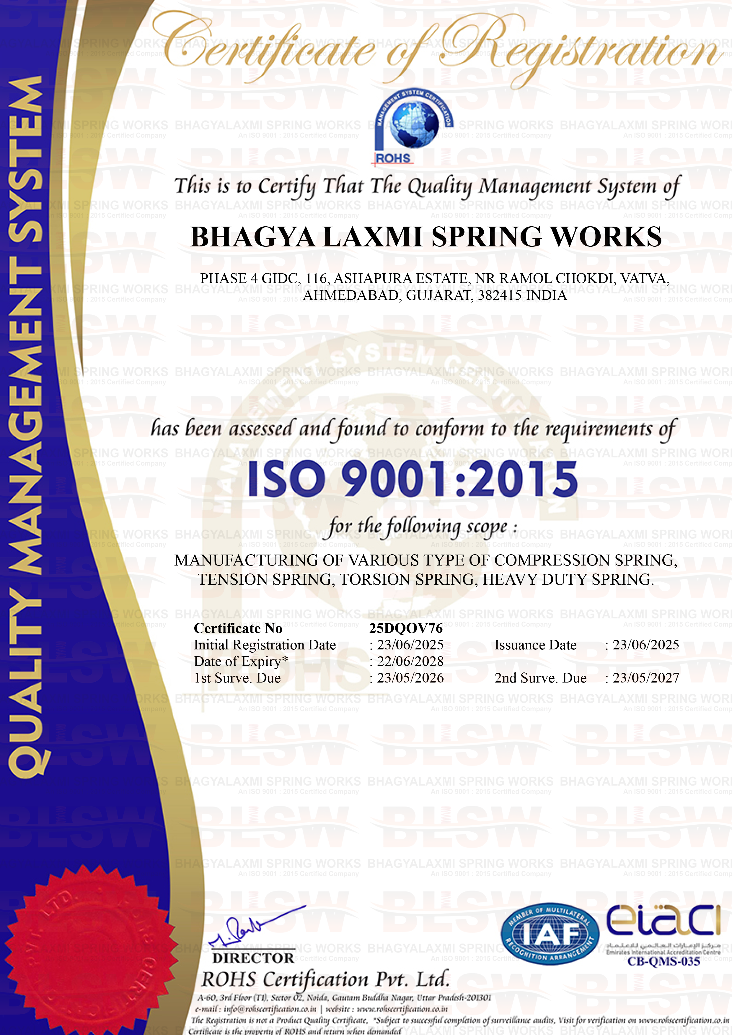 Bhagyalaxmi Spring Works is a leading manufacturer and supplier of high-quality springs and precision components. With years of expertise in the industry, we are dedicated to delivering durable, reliable, and custom-made spring solutions to meet the diverse needs of our clients.
